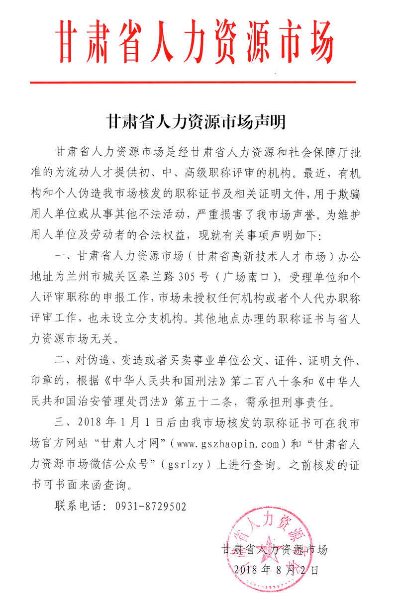 甘肃省人力资源市场声明