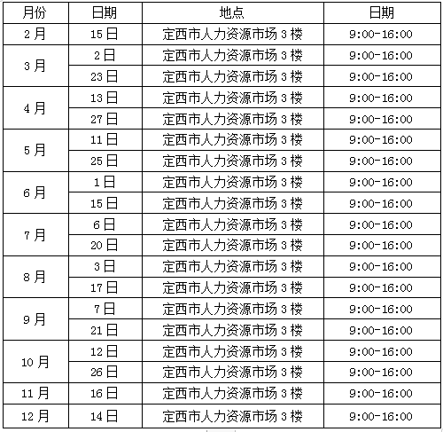 为实现多渠道、多形式就业,积极推动我市人力资源有序流通,定西市人力资源市场计划2019年共举办招聘会20场次,现将各场次举办时间通知如下,请各企业、人力资源服务机构及广大求职者周知:
