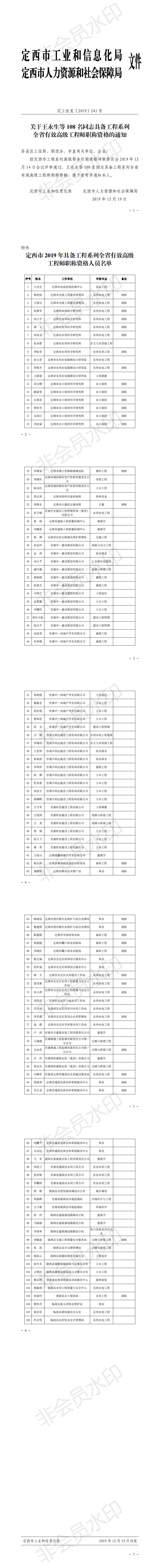 关于王永生等108名同志具备工程系列全省有效高级工程师职称资格的通知