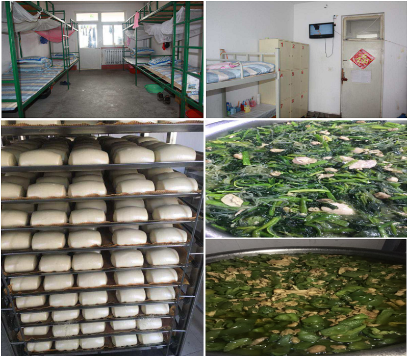 3、公司设有餐厅,统一配备餐具,吃、住免费。住宿有统一标准房间,6人一间,宿舍宽阔舒适,需自带被褥和洗漱用具,有暖气、电视;公司设有洗浴中心,洗澡免费。