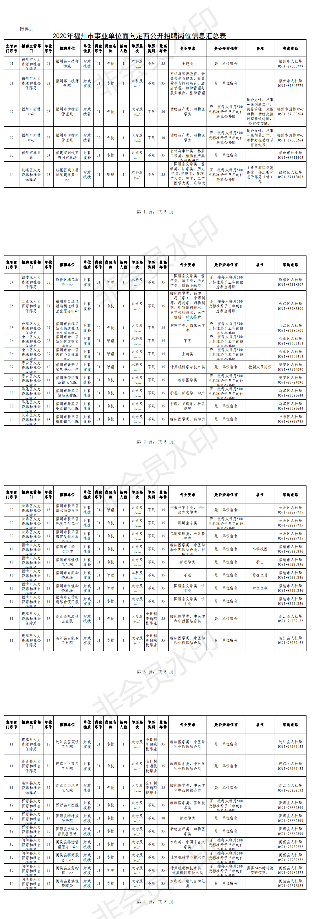 福州市人力资源和社会保障局 定西市人力资源和社会保障局 关于福州市2020年事业单位面向定西市 公开招聘工作人员公告 为贯彻落实福州市人民政府、定西市人民政府《东西部扶贫协作框架协议》(2017-2020年),积极吸引定西市高校毕业生到福州市就业,2020年福州市40家事业单位面向定西市公开招聘44名工作人员。现将有关事项公告如下: 一、招聘对象、条件 1、招聘对象:定西市各县区确定的建档立卡户未就业高校毕业生。 2、招聘条件:具有中华人民共和国国籍,且年满十八周岁;拥护中华人民共和国宪法;遵守纪律、品行端正,具备良好的品行;具有正常履行岗位职责的身体条件;具备招聘岗位所需的其他资格条件。 (招考单位、岗位、人数及具体要求详见《福州市2020年事业单位面向定西市招聘工作人员岗位汇总表》,并查阅《福州市2020年事业单位面向定西市公开招聘工作人员考试考生防疫要求》) 曾因犯罪受过刑事处罚或曾被开除公职的人员、在各级公务员或事业单位招考中被认定有舞弊等严重违反录用纪律行为的人员、在读非应届毕业生、现役军人、试用期内的公务员、失信被执行人以及法律规定不得报考的其他人员,不得报考。 以上岗位要求的毕业证等证件必须在2020年6月10日前取得;工作经历、年龄、现役等相关资格条件的计算时间均以2020年6月10日为截止日期。2020届高校毕业生毕业证、报到证可放宽至2020年8月31日前提交。 二、报名 此次考试报名采取网上报名的方式进行。报考者可直接通过福建考试报名网(http://fjksbm.com/s/fzdx2006/),以网上报名、网上自行打印准考证的方式报名。 1、网上提交个人信息:报考者于2020年6月10日8:30至6月14日12:00登录上述网站注册,提交个人信息及一张近期正面免冠二寸证件照、身份证、户口簿、报到证、毕业证( 2020届高校毕业生提供毕业生就业推荐表证明)和《定西市建档立卡户未就业高校毕业生登记表》等证件的照片(图片大小需小于500KB)。报考者只能选择一个岗位进行报名。报名时,报考者提交的报考信息应当真实、准确,提供虚假报考信息的,一经查实,即取消报考资格。本次报名不设开考比例要求、考试免收报名费。 2020届高校毕业生可提供毕业生就业推荐表证明,书面承诺在公告约定的日期前取得毕业证书和报到证,逾期取消聘用资格。 2、资格初审:报考者网上报名资格初审时间为2020年6月10日8:30至6月14日12:00。资格初审由定西市人力资源和社会保障局负责。报考者可在报名成功后1个工作日之内,登录上述网站查询是否通过了资格初审。申诉时间为在6月10日9:00至6月14日下午17:30,逾期不予受理。 3、下载准考证:报考者于2020年6月19日至6月20日登录上述报考网站,自行上网下载、打印本人准考证。逾期未打印准考证的或者未及时提供合格照片无法下载准考证的,取消考试资格。 三、笔试和面试 (一)笔试 1、笔试内容:本次笔试科目为《综合基础知识》,题型全部为客观题。命题范围为政治和经济基本理论、公共管理、法律基础、职业能力、职业道德、科技和人文常识、福建省情等。本次考试不指定考试辅导用书,不举办也不委托任何机构举办考试辅导培训班。 2、笔试时间和地点:笔试委托定西市人社局负责组织。笔试时间定于2020年6月21日(星期日)9:00—11:00。笔试地点设在定西市安定区,具体考点以考生准考证上标明的为准。 3、笔试携带证件:考生进入学校须全程佩戴口罩,8:00开始进校门,自觉接受体温检测。考生携带准考证、有效居民身份证原件和《疫情防控体温测量登记表》进行防疫检查,同时提供当日有效的甘肃健康码绿码截图(手机现场展示),经体温测量正常后(小于37.3℃)参加笔试,未达到上述任何一项者,不允许进入考场。考生积极配合考点安检和监考人员的入场安全检查。 考试所需的文具由定西市人社局统一提供,考生不得携带文具、书籍、资料、稿纸、电子设备(包括智能电话手表、计算器)等其他任何物品进入考点,一经发现按违纪处理,取消考试资格,并记入个人诚信档案,今后三年内不得参加我定西市事业单位公开招聘考试。 4、成绩查询:笔试合格分数线及成绩可于2020年7月8日后登录定西市人社局网站查询。 (二)面试 1、面试由福州市人社局和定西市人社局共同组织。笔试成绩达到合格分数线者,按照每个岗位招考计划数的3倍从高分到低分依次确定面试人选,不足3倍的,按上线人数确定面试人选。面试名单面试前在定西市人社局网站公布。 2、面试时间拟定于7月中下旬,具体时间地点提前在定西市人社局网站公告。如考生逾期不参加面试,视为自动放弃面试资格。 3、面试成绩最低合格线为60分。进入面试人数少于或等于招考人数时,报考者的面试成绩应达到70分以上,方可进入体检和考核环节。 四、成绩计算 进入面试考生的综合成绩按笔试、面试成绩各占50%的比例折合计算。若综合成绩并列的,则以笔试成绩分高者为拟聘人选;若笔试成绩仍并列的,则加试一场面试,综合成绩排名以加试成绩为准。 综合成绩排名可于面试后约7个工作日登录定西市人社局网站查询。 五、体检和考核 1、面试结束后,按照考试综合成绩从高分到低分的顺序,以1:1比例确定进入体检和考核的人选。 2、体检委托定西市人社局负责组织。体检标准及项目参照公务员录用标准执行。不按时参加