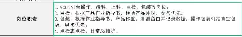 VCUT机台操作,主要工作内容: