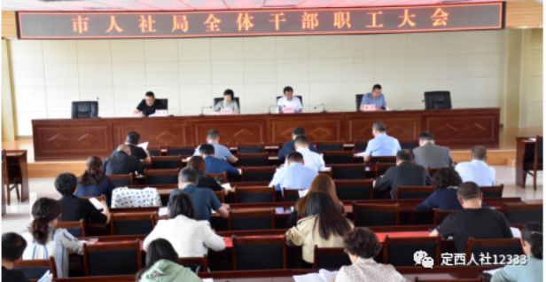 6月2日,定西市人社局召开全体干部职工会议,专题传达学习中国共产党甘肃省第十四次代表大会精神和5月31日市委常委会扩大会议精神。并就深入学习宣传和贯彻落实党代会精神作了安排部署。