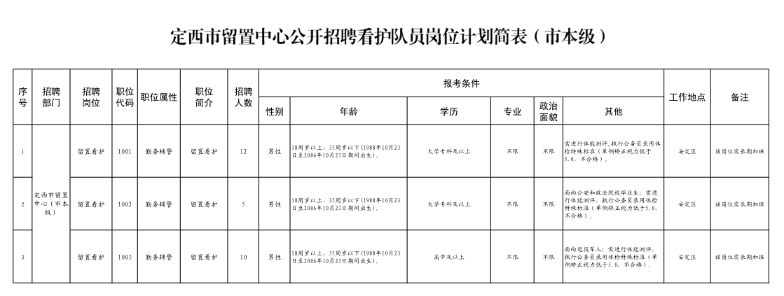 定西市留置中心公开招聘看护队员公告(市本级) |