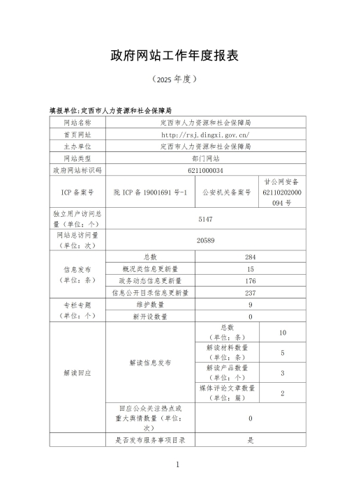 定西市人力资源和社会保障局2025年政府网站工作年度报表